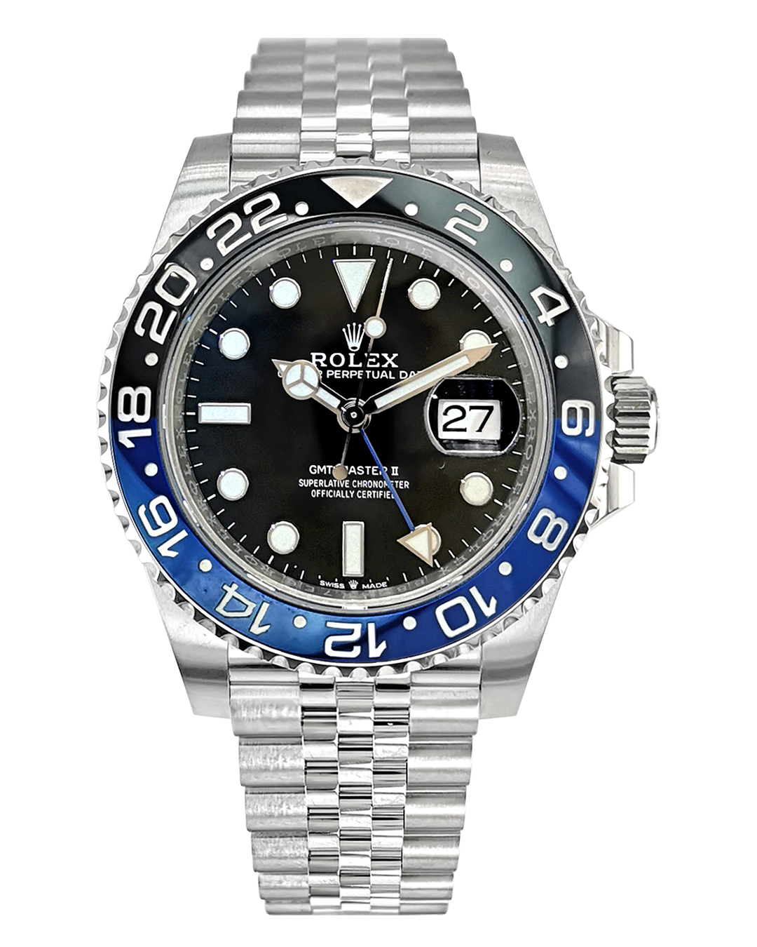 Rolex GMT Master II Batgirl 40mm SS Blue/Black Ceramic Bezel Black Dial Jubilee Bracelet Auto Men Watch