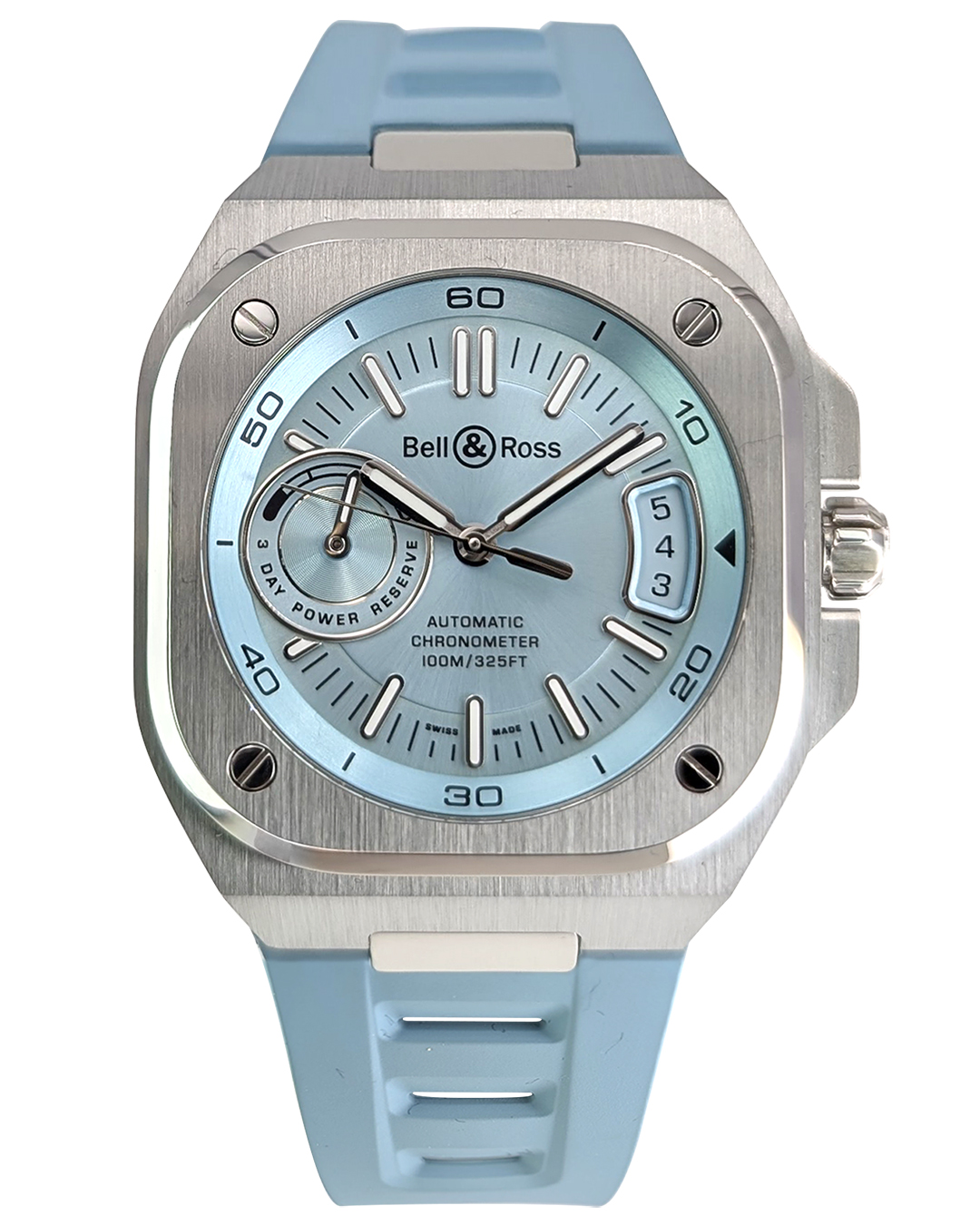 Bell & Ross BR-X5 Ice Blue Steel 41mm SS Ice Blue Dial Rubber Strap Auto Men Watch