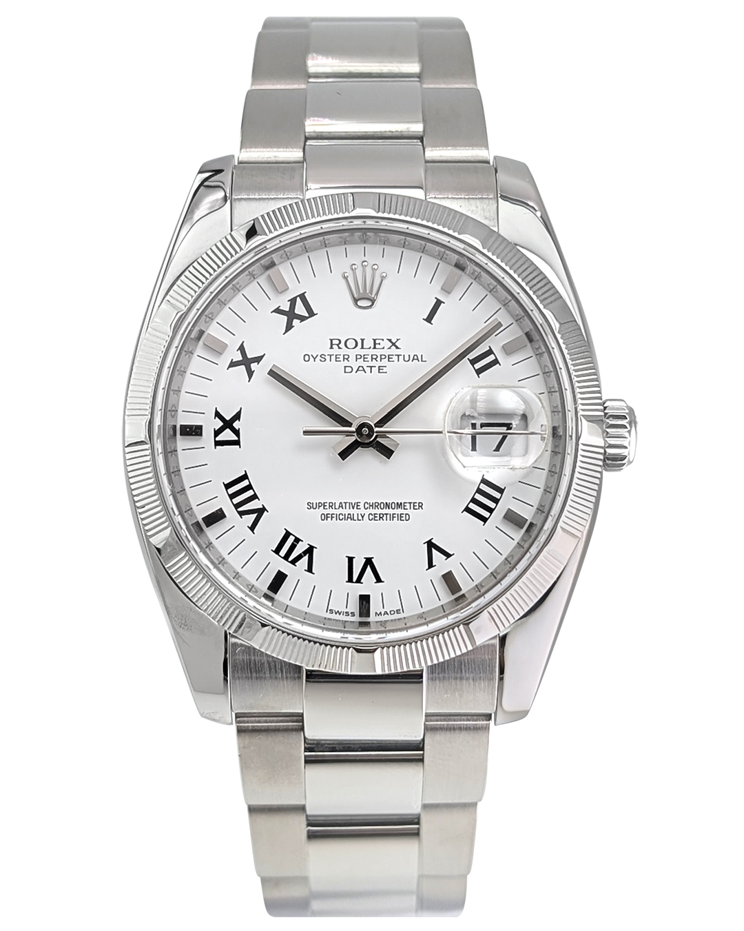 Rolex Oyster Perpetual Date 34mm SS White Roman Dial Bracelet Auto Men Watch