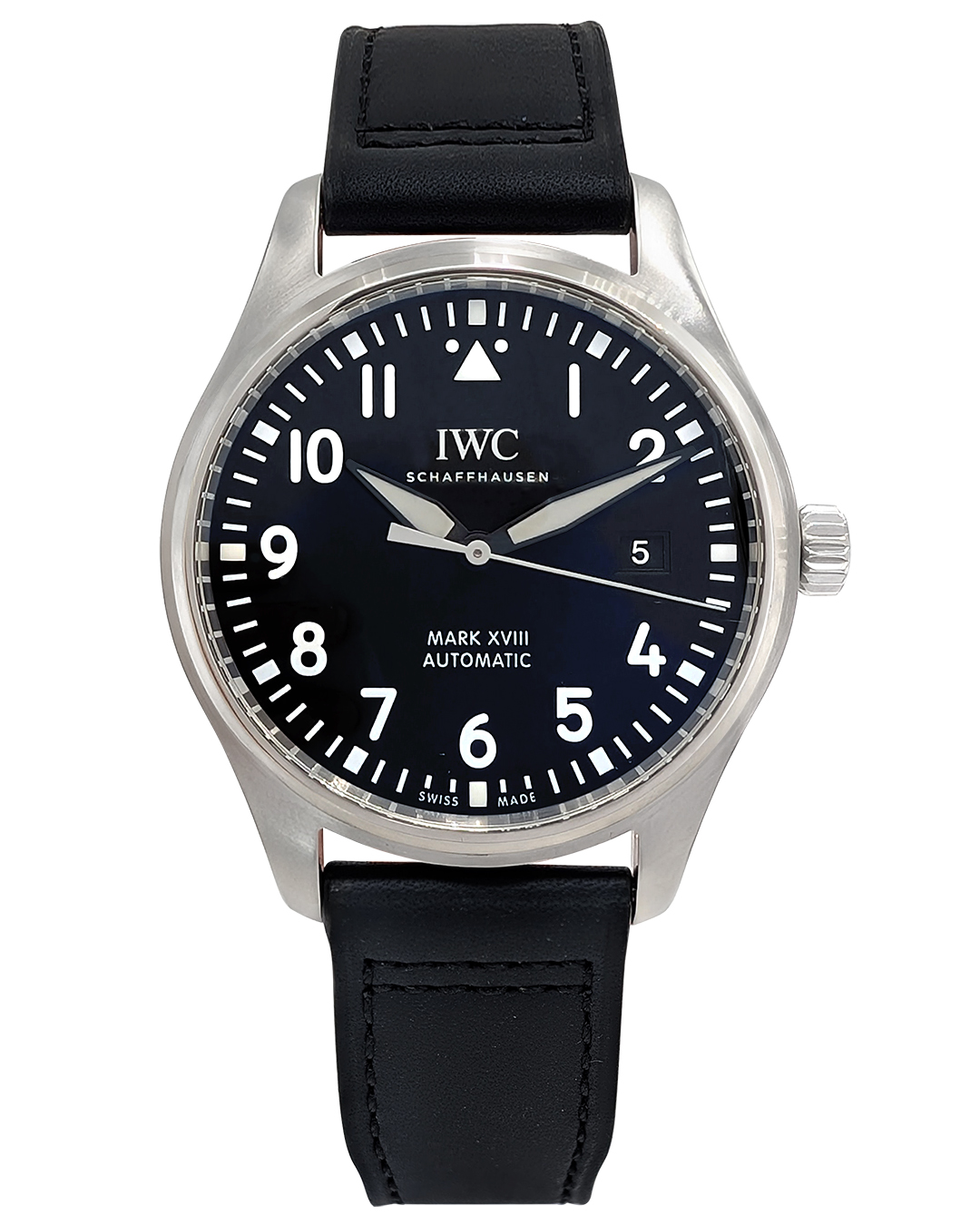 IWC Pilot's Watch Mark XVIII 40mm SS Black Number Dial Leather Strap Auto Men Watch