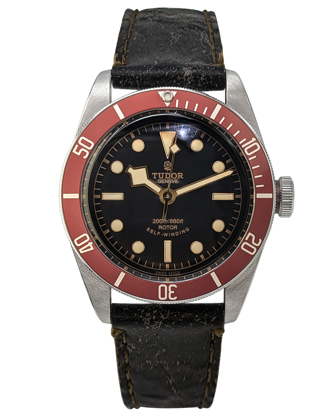Tudor Black Bay 42mm SS Black Dial Leather Strap Auto Men Watch