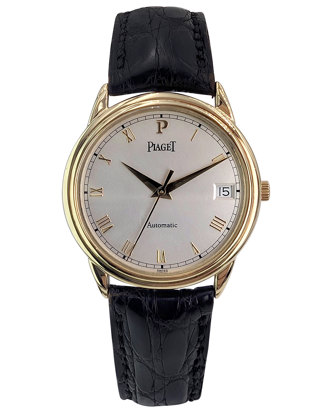 Piaget Gouverneur 33mm 18K YG White Roman Dial Leather Strap Auto Men Watch