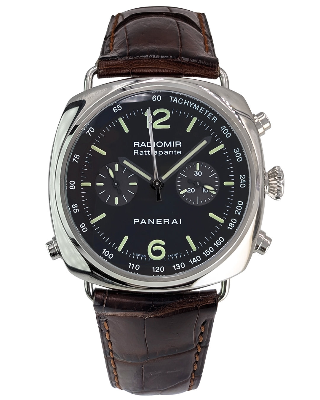 Panerai Radiomir Rattrapante 45mm SS Black Dial Leather Strap Auto Men Watch