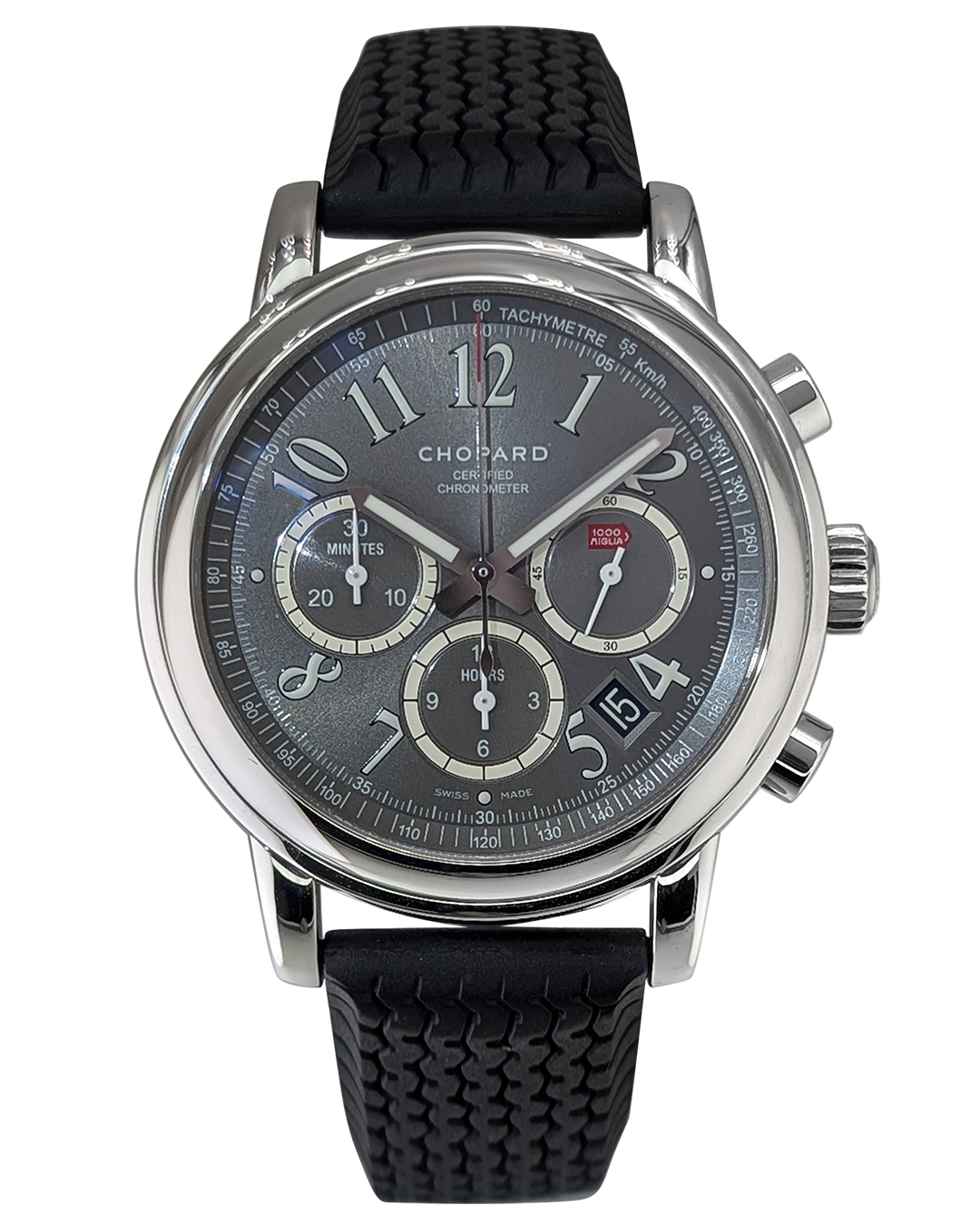 Chopard Mille Miglia Chronograph 42mm SS Grey Number Dial Rubber Strap Auto Men Watch