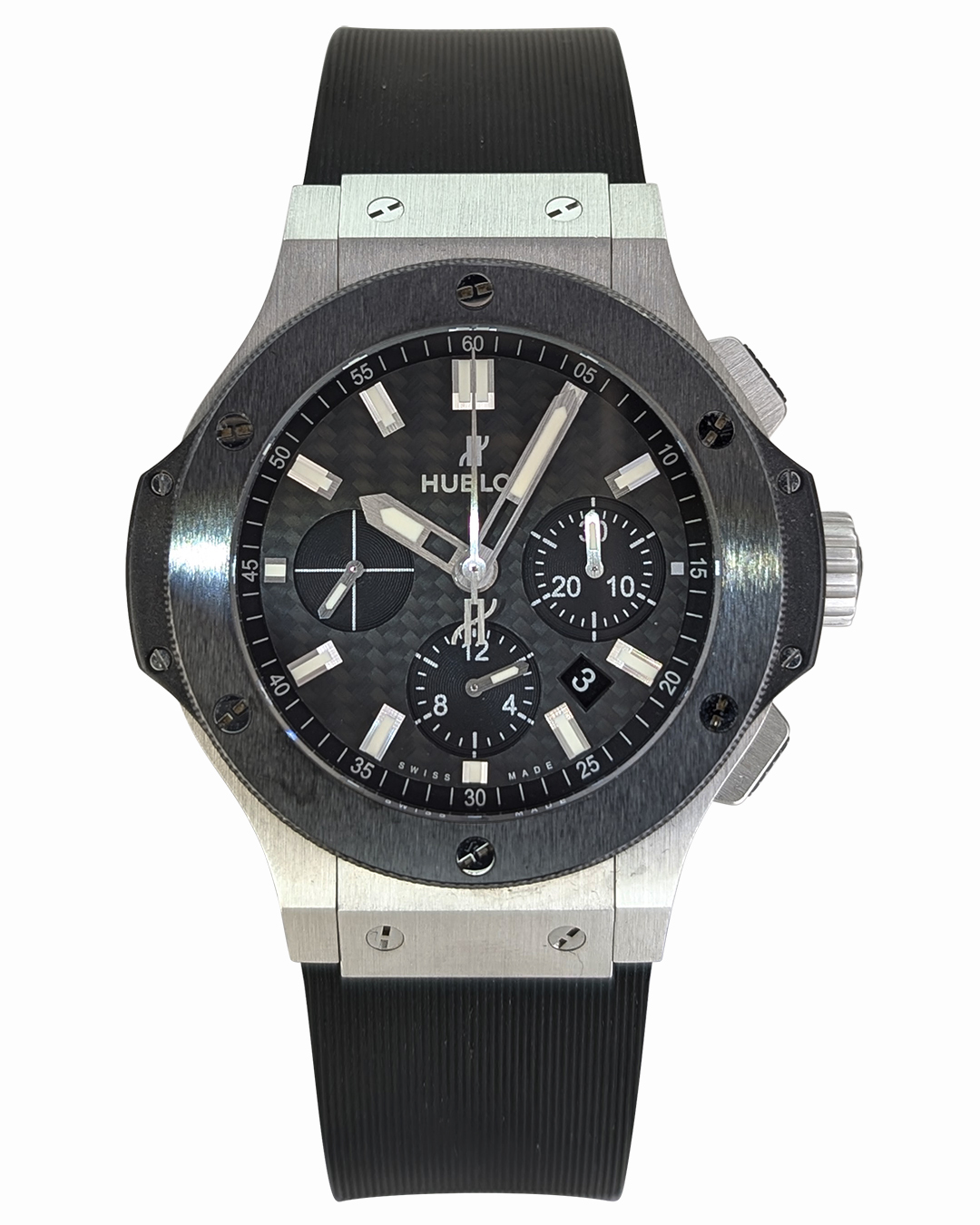 Hublot Big Bang Chronograph 44mm Ceramic Bezel Black Carbon Dial Rubber Strap Auto Men Watch