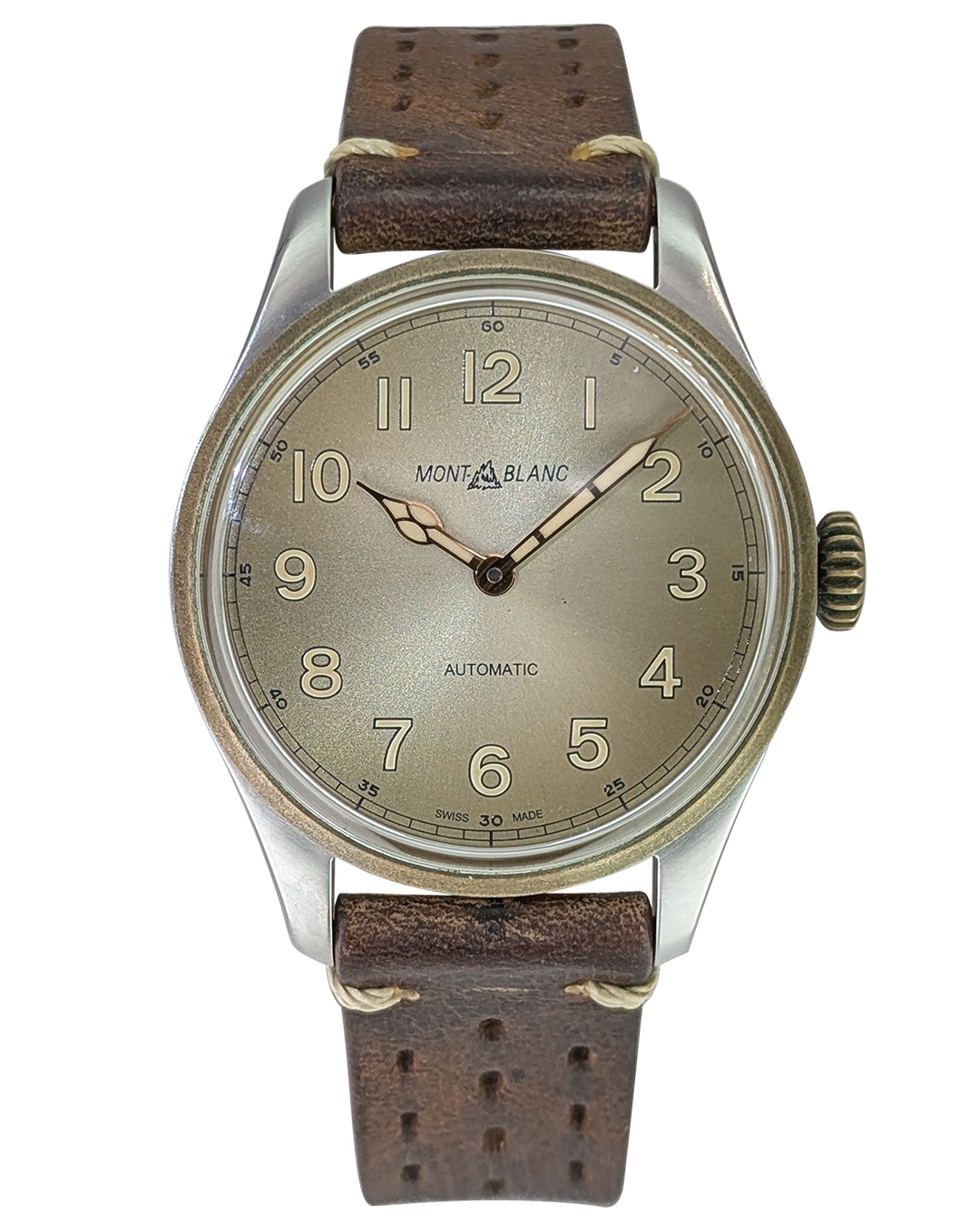 Montblanc 1858 40mm SS/Bronze Bezel Champagne Number Dial Leather Strap Auto Men Watch