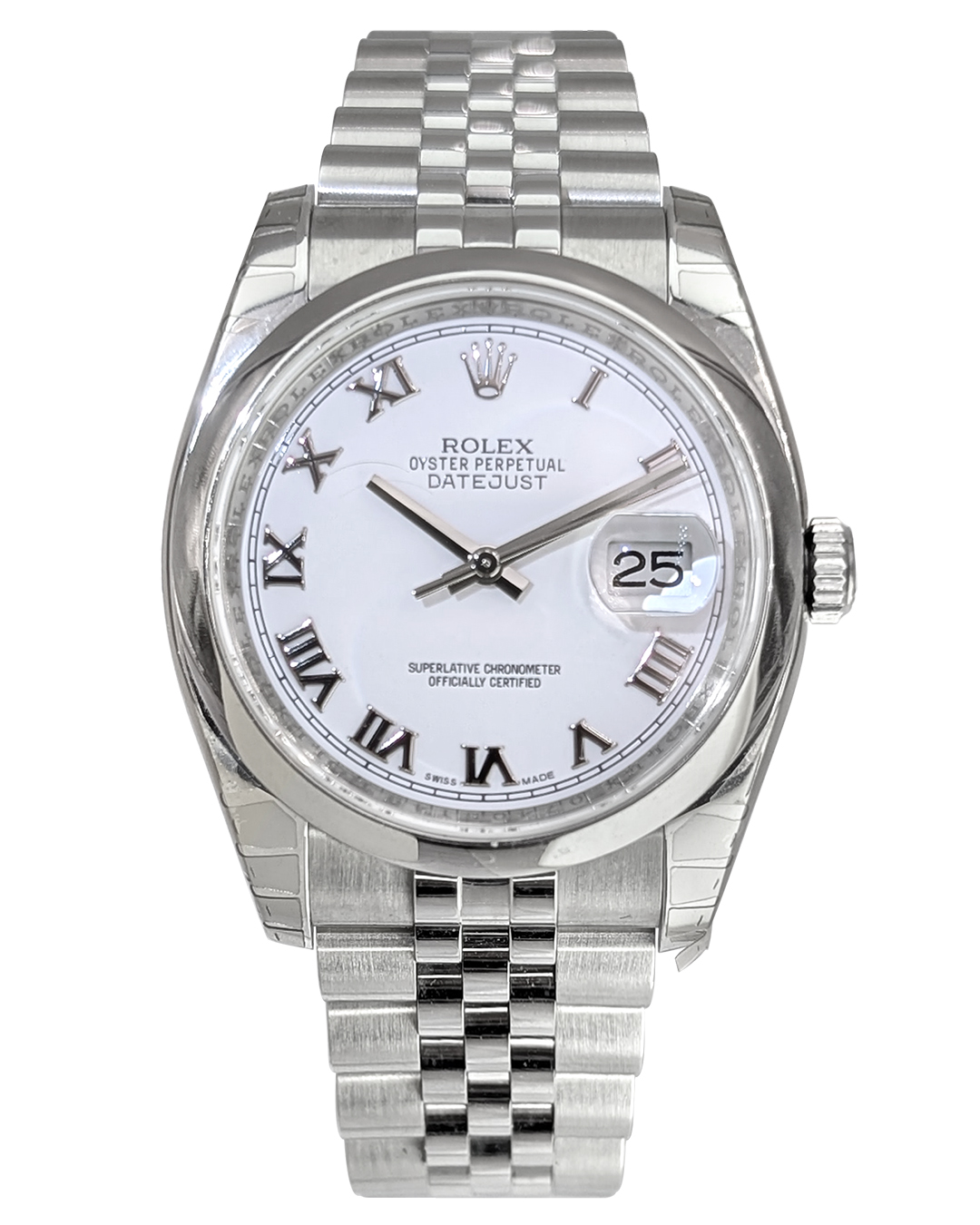 Rolex Datejust 36mm SS Domed Bezel White Roman Dial Jubilee Bracelet Auto Men Watch