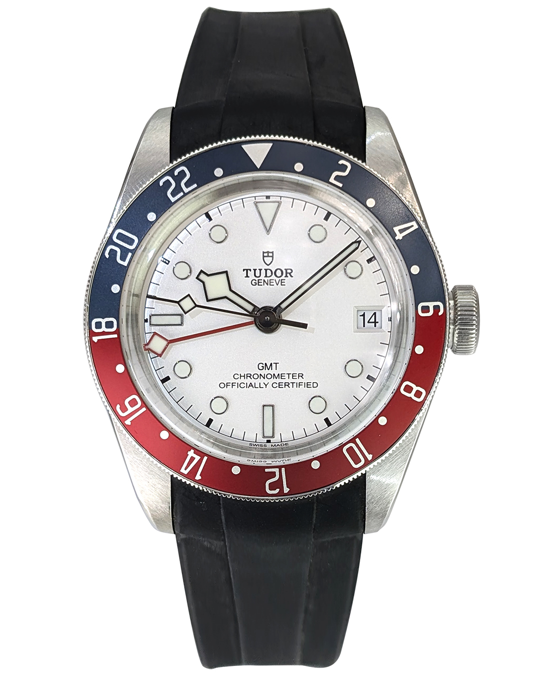 Tudor Black Bay GMT 41mm SS Blue/Red Bezel Silver Dial Rubber Strap Auto Men Watch