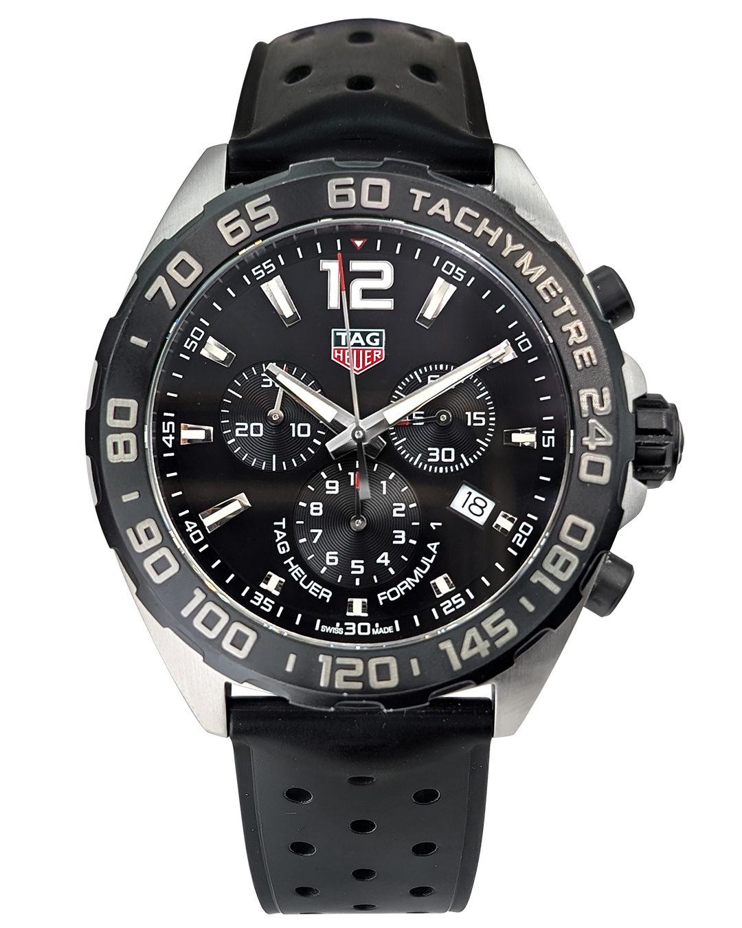 TAG Heuer Formula 1 Chronograph 43mm SS Coated Titanium Bezel Black Dial Rubber Strap Quartz Men Watch